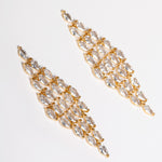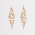 Los Pendientes Bruma son unos pendientes largos compuestos por un diseño en forma de racimo, decorado con circonitas en forma de lágrima,el cierre es a presión.