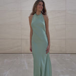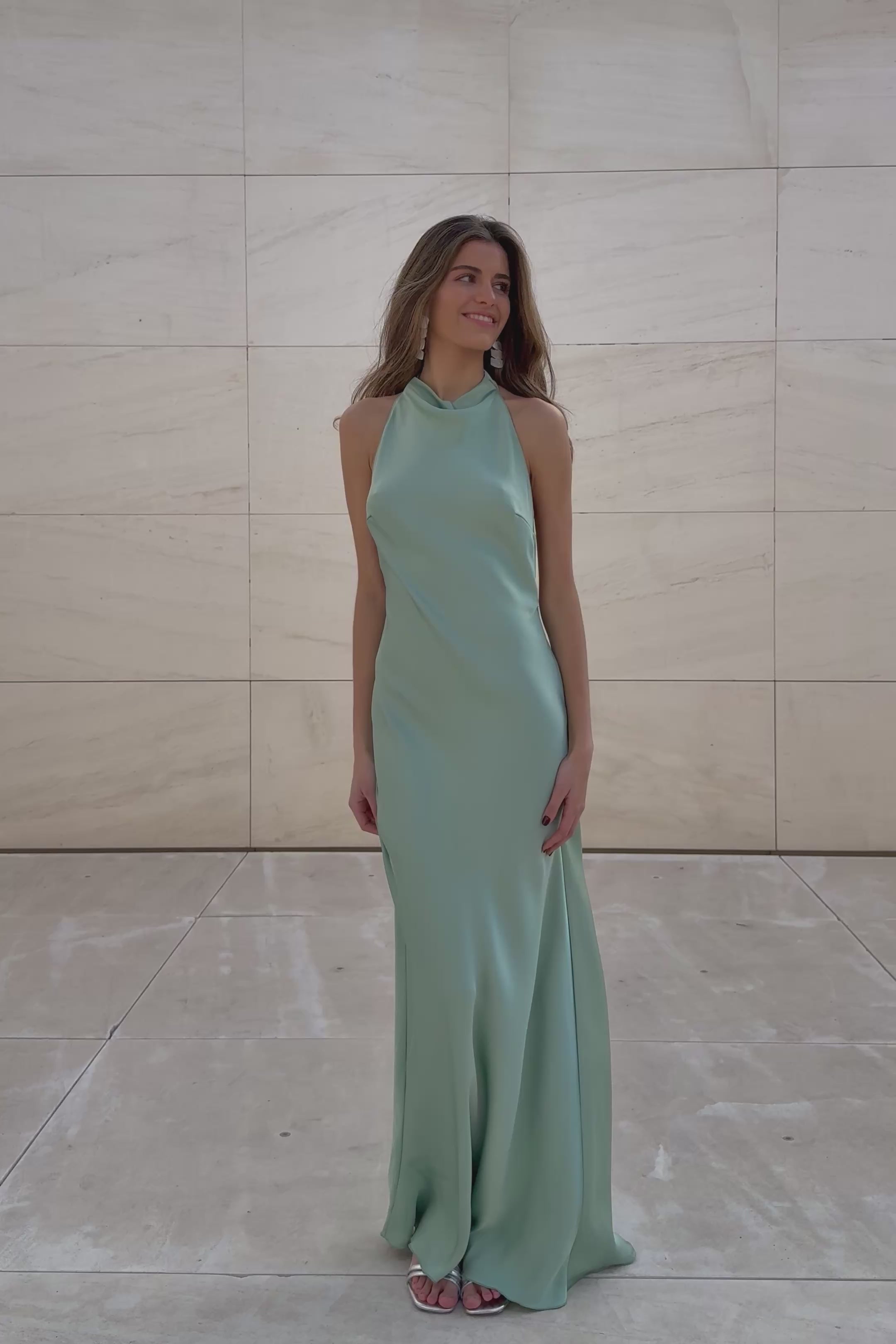 El vestido Icon en color salvia destaca por su tono suave y elegante, ideal para los eventos de primavera y verano. Su escote halter y espalda descubierta realzan la silueta de forma favorecedora, mientras que su tejido fluido aporta movimiento y ligereza. Una opción perfecta para bodas de día, celebraciones especiales y eventos al aire libre.