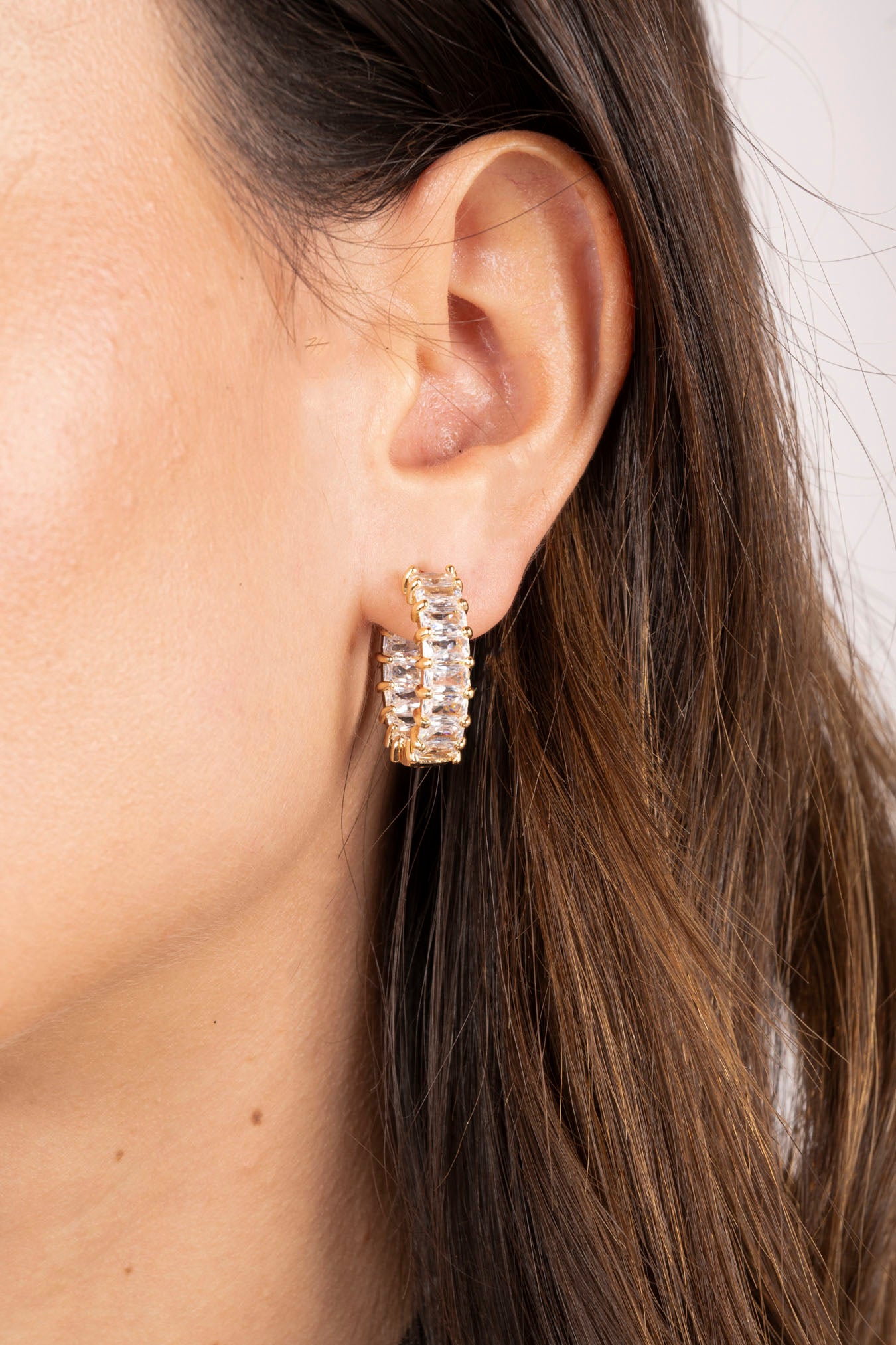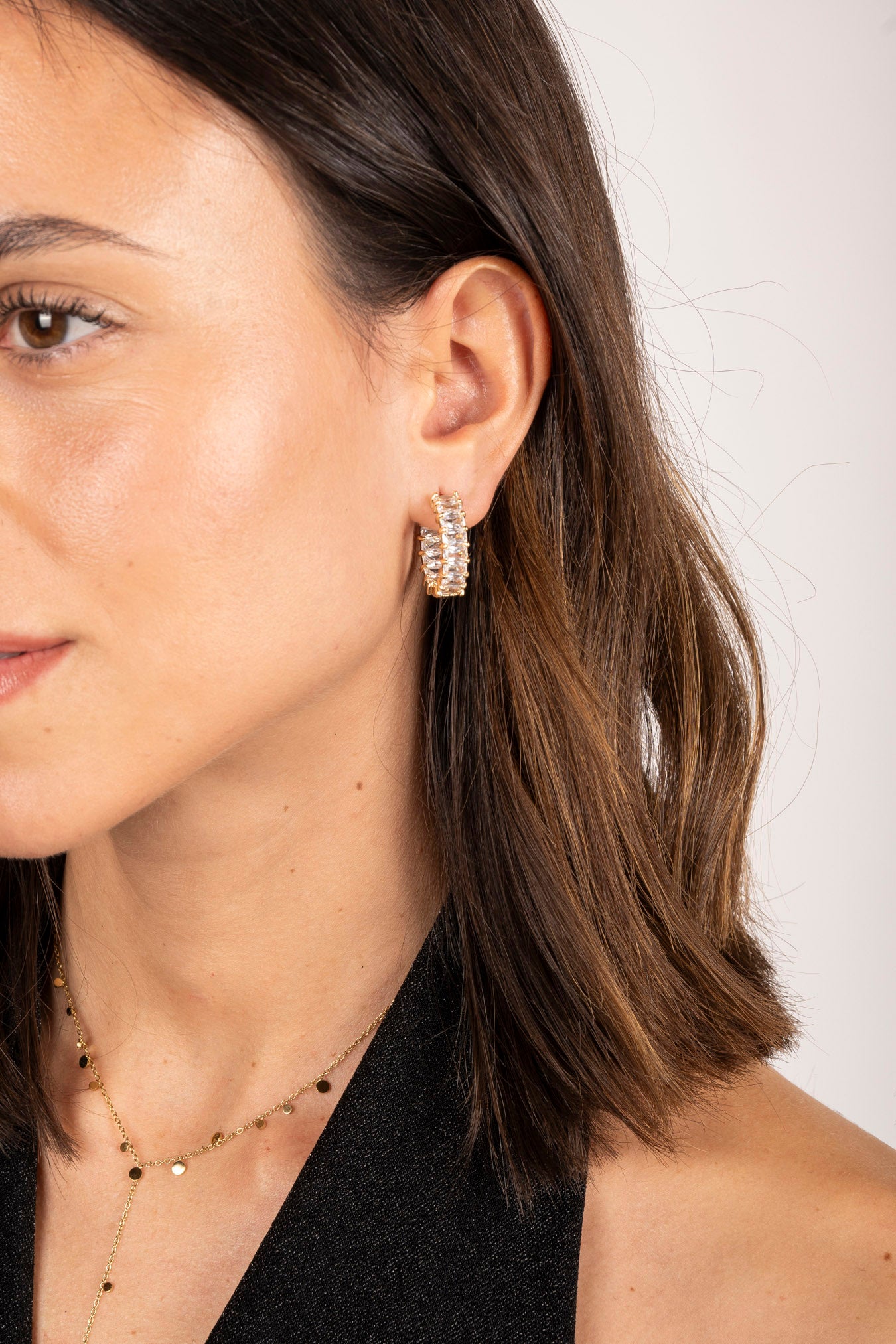 Los Pendientes Eco son unos pendientes en forma de aro  y circonitas baguette,