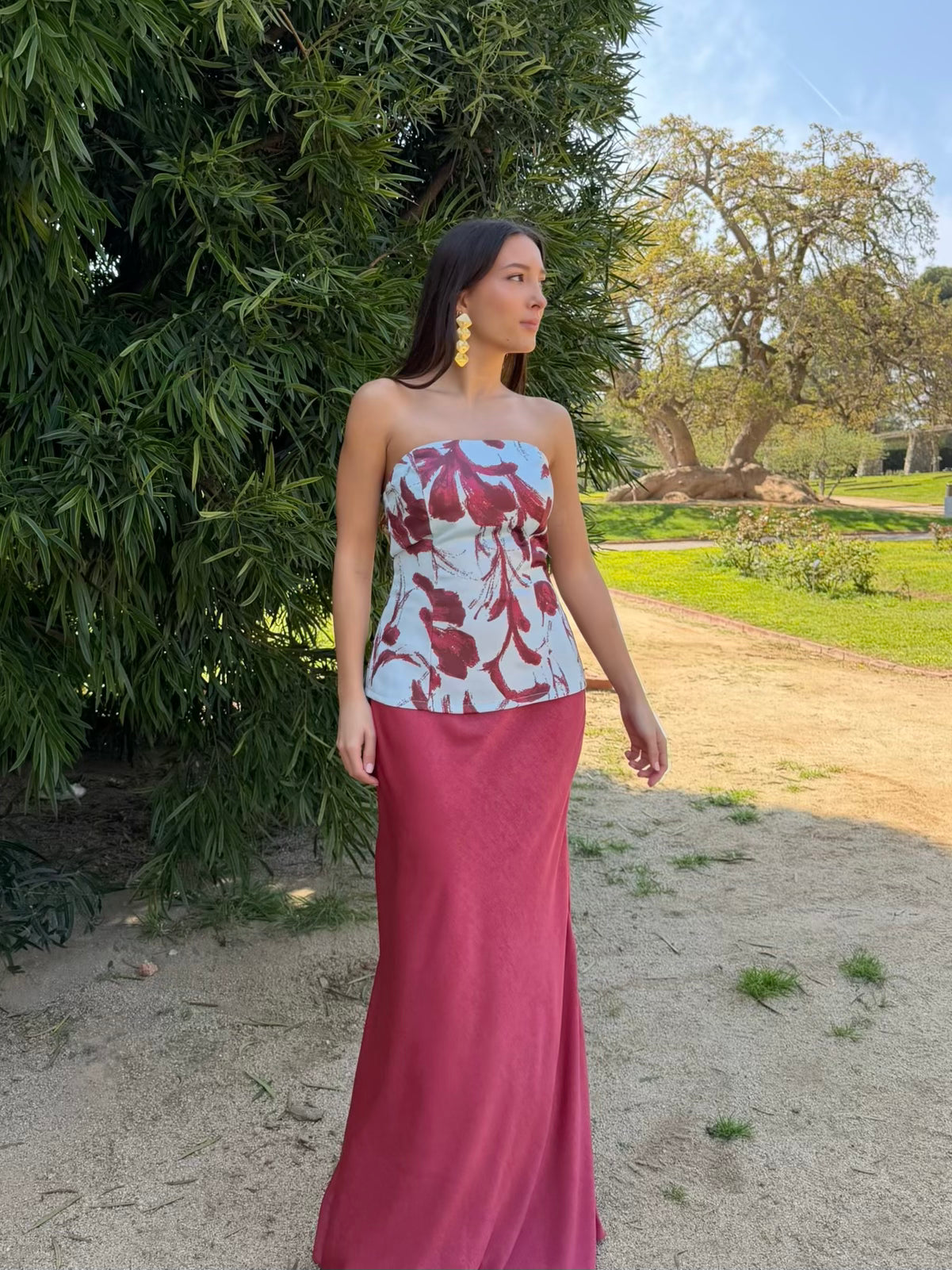 Estampado floral exclusivo en tonos granate.