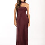 Eleva tu look de invitada con nuestro Vestido Kim Azul Granate. Confeccionado en un elegante tejido satinado que aporta fluidez y movimiento.