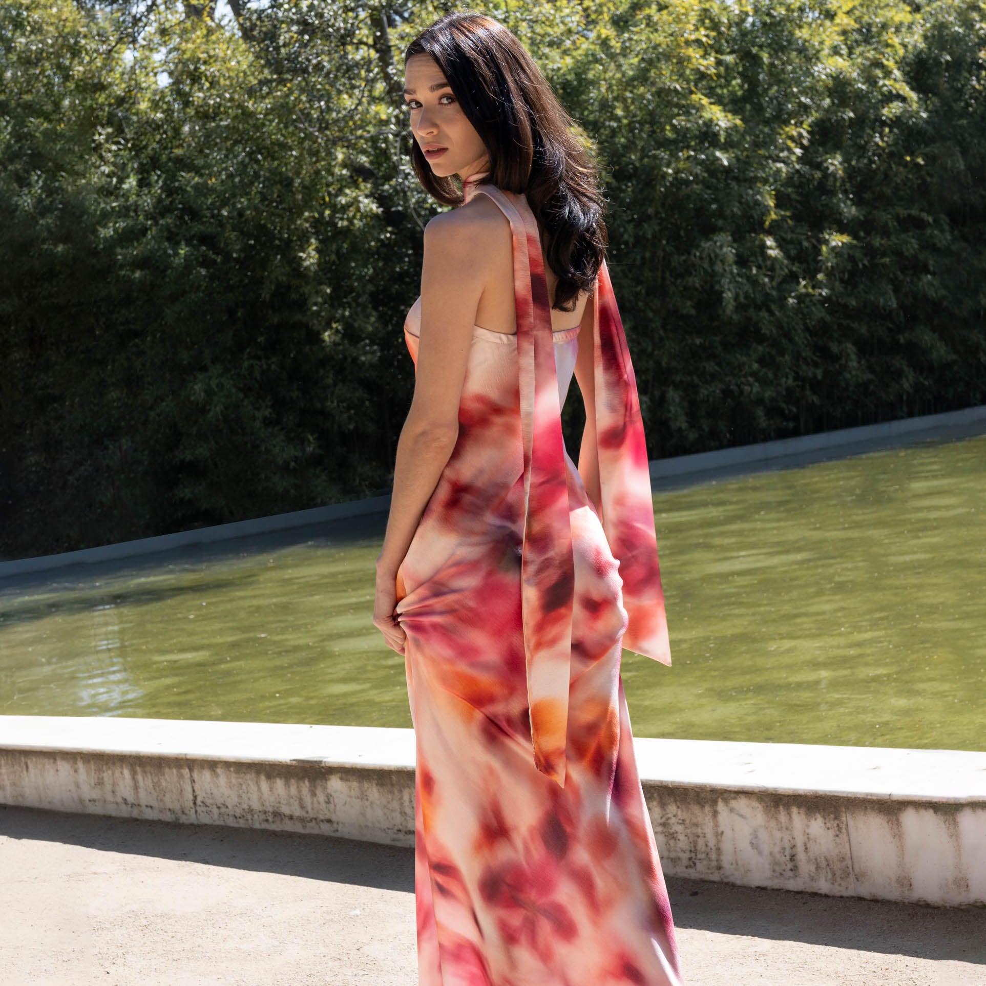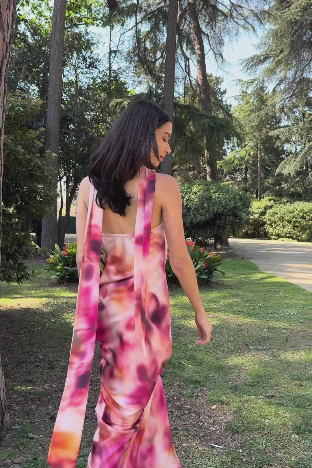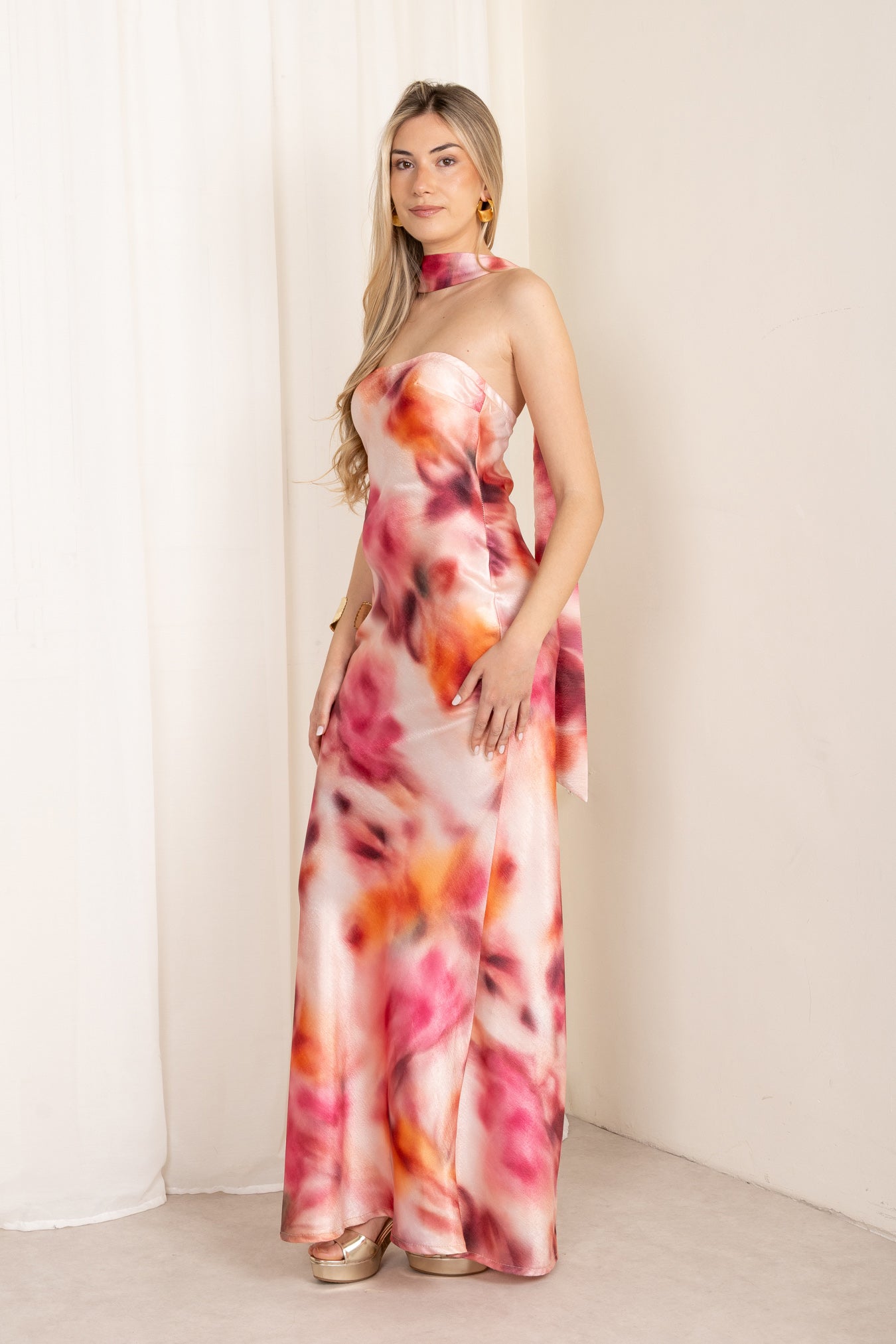 El Vestido Azahara es la elección perfecta para quienes buscan un look vibrante y moderno . Destaca por su espectacular estampado en tonos rosas, naranjas y burdeos sobre un fondo suave, ideal para invitadas de boda, graduaciones, looks de feria o eventos especiales que quieren salir de lo convencional.